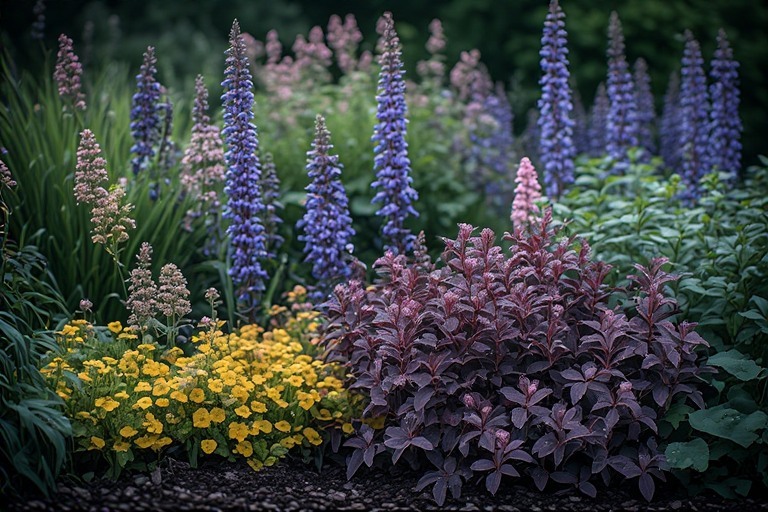 Матричный принцип: Чтобы сад стал по-настоящему автономным, мы применяем метод матричных посадок. Мы создаем плотный нижний ярус из почвопокровных многолетников (сеслерия, живучка, котовник), которые высаживаются с высокой плотностью.